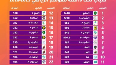 في بطولة المملكة للكرة الطائرة الشاطئية (فئة الشباب تحت 19 سنة):🔹 نادي الأزهر يحقق المركز 11 من بين 22 ناديًا…