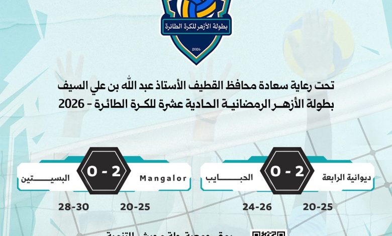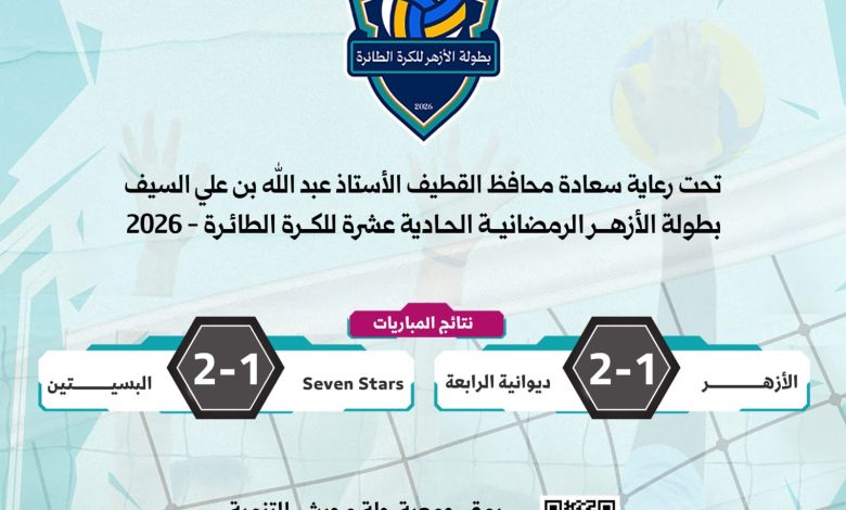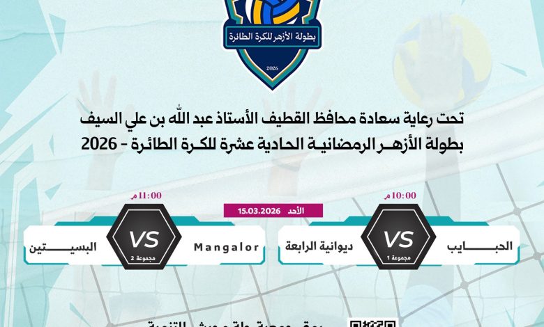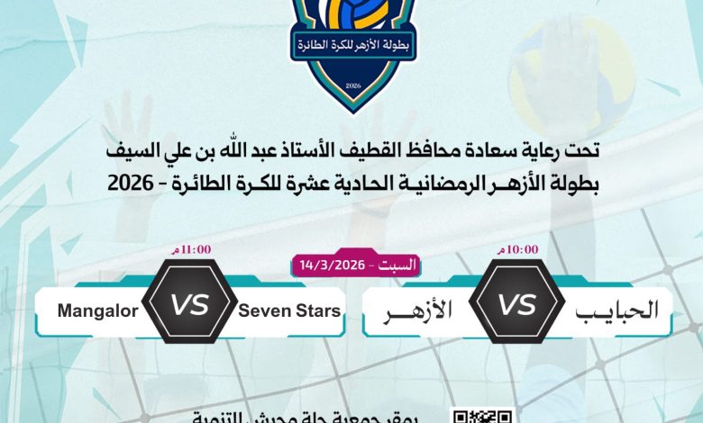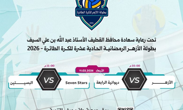 أكمل القراءة »تحت رعاية سعادة محافظ القطيف الاستاذ عبد الله بن علي السيف، تنطلق بطولة الأزهر الرمضانية الـ 1️⃣1️⃣ للكرة الطائرة 2026..📅…