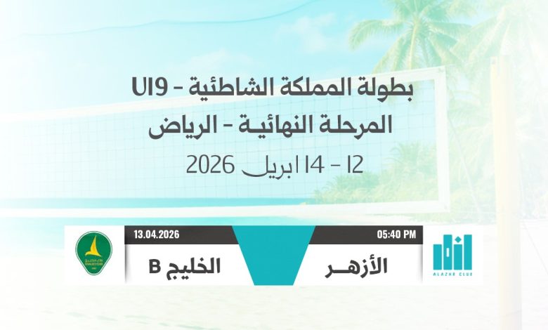 أكمل القراءة »ضمن بطولة المملكة الشاطئية U19📍 المرحلة النهائية – الرياض📅 الثلاثاء 13 أبريل 2026⏰ 05:40 مساءً⚔️ الأزهر 🆚 الخليج B