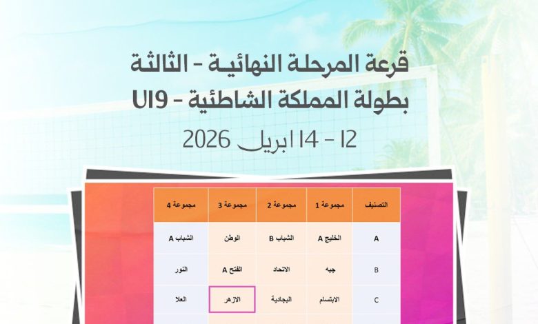أكمل القراءة »طائرة الأزهر في المجموعة الـ 3️⃣ضمن المرحلة النهائية لبطولة المملكة الشاطئية (تحت 19 سنة) 🏐🗓️ 12 – 14 أبريل 2026📍…