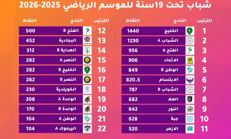 أكمل القراءة »نادي الأزهر يواصل حصد ثمار التخطيط السليم بتحقيق المركز 10 في الترتيب العام لبطولة المملكة 2 للسهام 2025 – 2026..هذا…