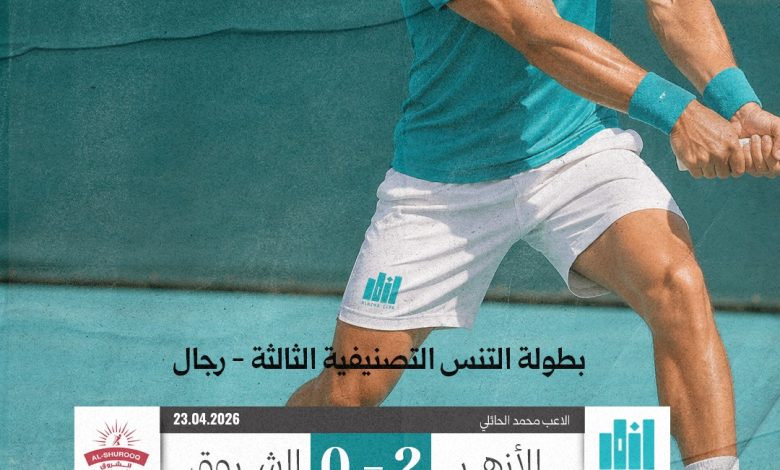 لاعب الأزهر (محمد الحائلي) يحسم المواجهة أمام الشروق بنتيجة 2-0 في بطولة التنس التصنيفية الثالثة – رجال 🔥مستوى فني عالي…