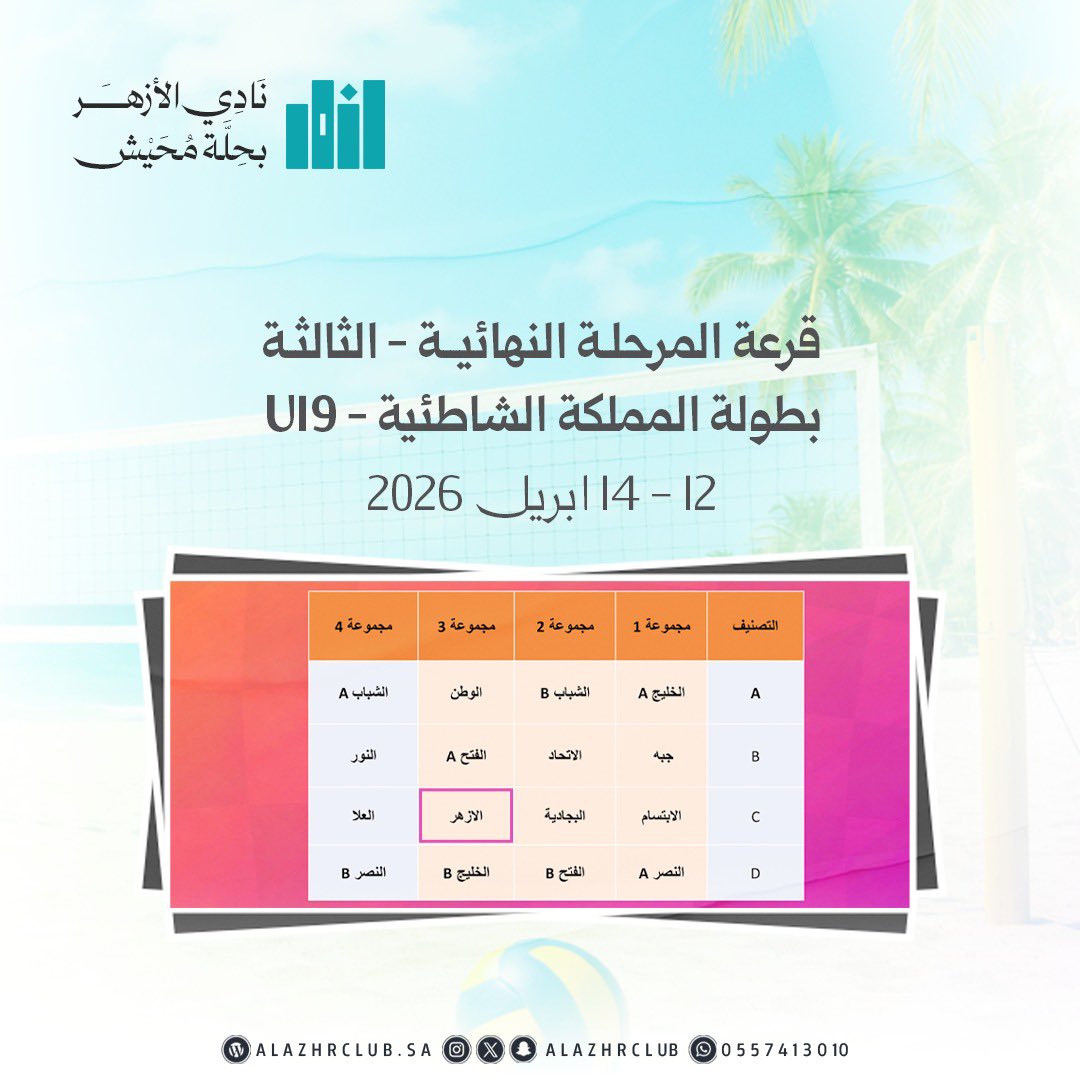 ضمن المرحلة النهائية لبطولة المملكة الشاطئية (تحت 19 سنة) 🏐