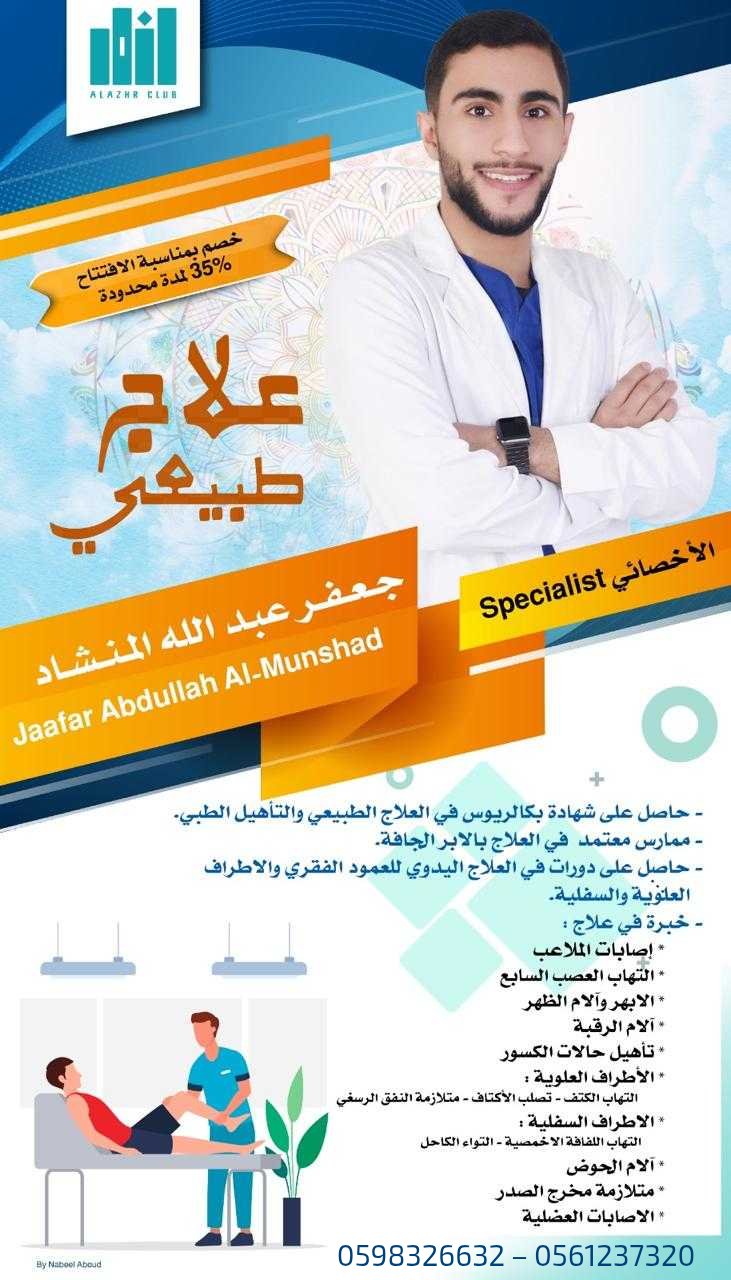 في عيادة الأزهر للعلاج الطبيعي نوفر لك رعاية احترافية لعلاج الإصابات، آلام المفاصل، والتأهيل الطبي بأحدث الأساليب.