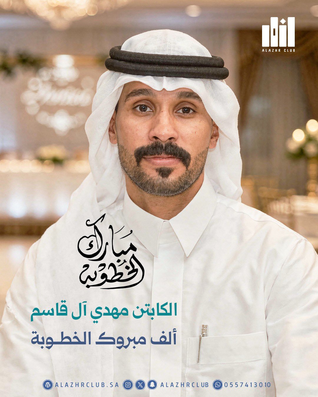 أسرة نادي الأزهر تبارك لنجم الفريق الأول لكرة الطائرة الكابتن مهدي آل قاسم بمناسبة عقد قرانه.. أدام الله الأفراح والمسرات 💐