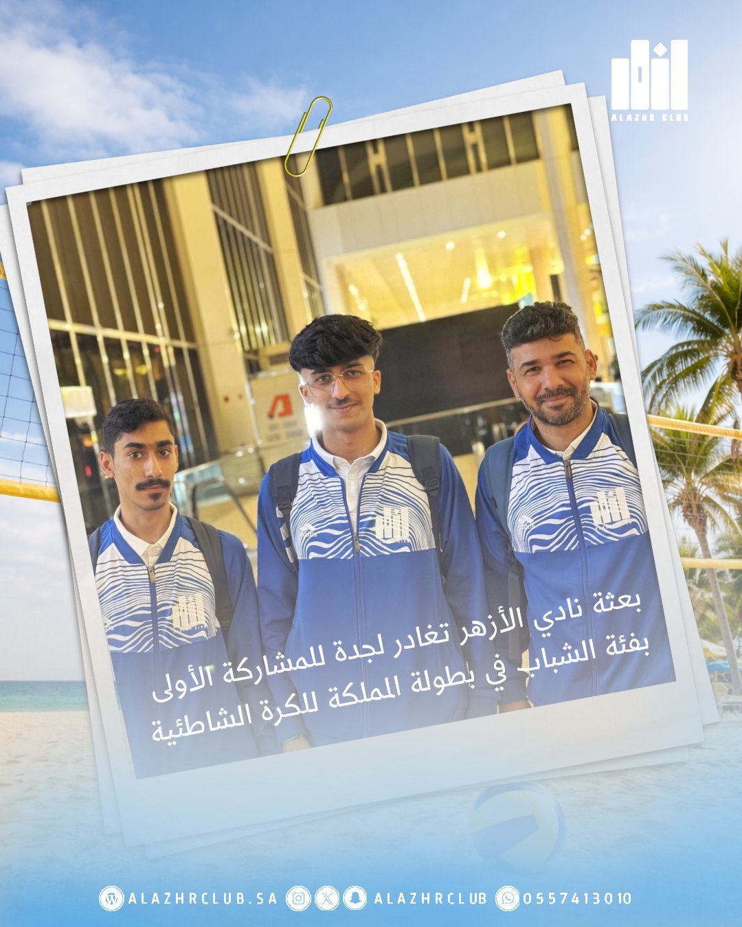 بعثة نادي الأزهر تغادر إلى جدة لخوض أولى المشاركات التاريخية لفئة الشباب في بطولة المملكة للكرة الطائرة الشاطئية 🇸🇦🏐